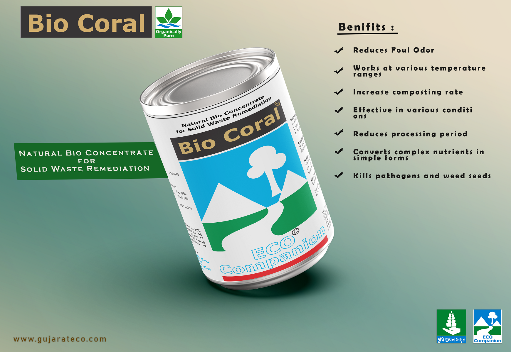 Gujarat Eco Microbial Technologies Pvt Ltd has decided to establish Strategic Organic Farming Units throughout the state of Gujarat to facilitate the process of bringing revolutionary changes in farming methodologies and to help educate farmers and make them aware of the need to substitute the use of toxic chemicals.